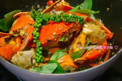 青胡椒在香港比較少見,即是新鮮的胡椒,非常翠綠,一串串的,在泰國非常普遍,香氣清新柔順,雖不及黑白胡椒般濃, 也不像黑椒般強悍凜烈,是含蓄低調的辛和辣,不會嗆喉,多用於爆炒菜式,惹味卻不太過火。 用來炒肉蟹是另一種風味,配以各式香料,香得不能再香,惹味中卻帶點清新,鮮味更濃! 真是泰好味! 材料: 大肉蟹 1隻(1斤) 青胡椒 4串 油 2茶匙 麻... 看全文 -