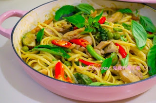 泰式青咖哩配意大利粉? Fushion?亂來? 其實這是曼谷很流行的吃法,一點都不怪,而且非常美味,香港吃到的青咖哩,多數配白飯、法包或蒜包,我最愛的吃法是炒飯,其次是意粉,最後才是白飯,意大利粉來到泰國都要本地化,懶理正宗不正宗,意大利人看到可能要暈,但好吃就是王道,不理了~ 青咖哩當然是用我大愛的藍象,除了常見的包裝,瓶裝其實更划算,隨口味用多用少,儲存容易,除了炒飯和意粉,我還會用青... 看全文 -