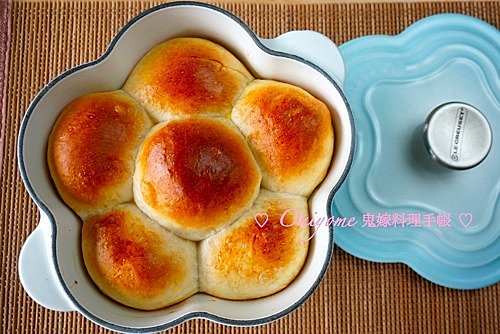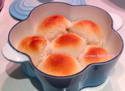 第一次用花花鍋做的小餐包大受好評, 之後又做了幾次,嘗試不同食譜,有餡的,不同份量的,不同方法的,綜合所有的經驗,得出今次的食譜和步驟,相公覺得最好吃,包包的質感最好。做型後第二次發酵,蓋上鍋蓋來發酵,不用保鮮紙,粉糰會發酵得更好,焗時加蓋來焗,包包會更加鬆軟,發得更大更鬆,質感比沒加蓋的好。牛油比較不健康,但味道比橄欖油好,掃蛋汁的比較好看和香口,掃橄欖油的,包面比較硬和乾。結論是用花花鍋做出來的包,比一般焗盤的好吃,鍋蓋起了很大很用,讓麵糰發酵得... 看全文 -