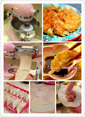 相公很愛吃金黃脆底的日式煎餃,但曼谷的餃皮非常 sorry, 又厚又霉,一煮便散,根本包不了餃子,唯有自己動手,豐衣足食,自己做餃子皮,厚薄自己定,一不做二不休,開機就來大量製作,一口氣包了65隻餃子,雪在冰箱裡,隨時都有餃吃,湯也可,煎也可,做紅油炒手也可~ 用KA廚師機其實已省了很多時間,當然用手搓和手動式壓麵機也可以。 日式煎餃的金黃脆底其實很簡單,秘訣是麵粉... 看全文 -