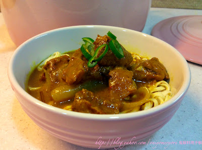 以前住中環,常吃九記牛腩 ,先來一碗清湯腩,再來一碗咖哩伊分來吃,想起也回味呢~ 但九記很有個性,黃金時間的8點多會關門休息,星期天又不開,有時去到又大排長龍,肚餓的我們又沒耐性排隊, 所以搬離中環後幾個月才吃到一次,有次相公想吃,家裡又剛好有牛助條和伊麵皇,再加一點白蘿蔔,相公說有9成相似,只是麵不夠油和彈,但我還是愛伊麵皇,沒街市的那種油膩,自稱不用油炸,卡路里也低很多,是比較健康的選擇! 今次用煲完,熄火焗的方法,... 看全文