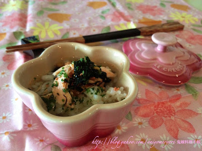 本來打算用舊POST因為找不到茶泡飯素,前幾天在日式超市看到,即買! 所以預留了一點前一晚的鹽燒三文魚,做第二天的午餐,混和飯、茶泡飯素和熱水,便大功告成,三文魚以少許鹽及胡椒,焗8分鐘。茶漬飯非常簡單,是沒謂口又不想吃粥時的一個好選擇,只用一碗飯,加入茶泡飯素及熱水拌勻即成。 前一晚吃剩的三文魚,不用加熱,即接放到飯面 材料: 茶泡飯素 1包 白飯 1碗... 看全文 -