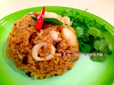 泰國人很愛吃炒飯,但在香港的泰菜館可能只有菠蘿炒飯吧! 這裡的炒飯款色非常多,用各式青、紅、黃咖哩的,冬陰功醬的、鹹魚的、魚露的,鬼嫁繼青咖哩炒飯後,最愛的就是蝦醬炒飯,不辣卻非常惹味開胃,適合曼谷悶熱的天氣,熱熱的讓人沒胃口。炒飯其實很隨意,解凍急凍海鮮,吃剩的冷飯,再加蝦醬,熱鍋大火炒炒炒,簡簡單單有得吃! 材料: 冷飯 2碗 雜錦海鮮 約200g... 看全文 -