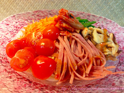 天氣熱來越熱,最好食涼浸浸的中華冷麵來降溫,超市有日本食品展,看見有新款冷麵,即試,冷麵爽口彈牙,開胃醒神,簡單又無難度,洗洗切切,不用調味,更不會煮到一身大汗。日本製的中華韓式冷麵,「三國演義」? 材料 (二人份): 中華冷麵 二人份 1包 車厘茄 10粒 青瓜 1條 紅蘿蔔 1條 本菇或切片鮮菇 1包... 看全文 -