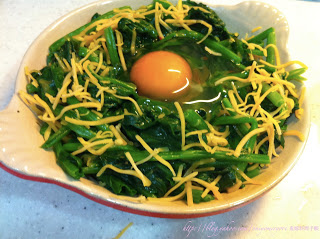 這是一個超級簡單的配菜,芝士可以除去菠菜的草腥味,半熟蛋汁混和芝士菠菜,美味! 用Le Creuset 的 16cm Egg Dish 來整剛好。 材料: 菠菜 半斤 碎芝士 2湯匙 雞蛋 1隻 調味: 鹽 1/2 茶匙 胡椒 1/4 茶匙 製法: 1) 菠菜... 看全文 -