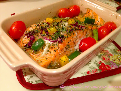 泰國人原來很愛吃三文魚,可能是大量入口的關係,價錢竟然比香港便宜,前幾天見到這塊美美的三文魚,決定用它來給 Satin Pink 19cm baking tray 剪彩,美美的粉紅配色彩繽紛的彩椒和三文魚,感覺很嘉年華喔~ (我在說什麼?) 煮飯時相公走過來八掛,其實他只是太餓了! 相公:今晚吃什麼? 鬼嫁: 吃三文魚給 Satin Pink baking tray... 看全文 -