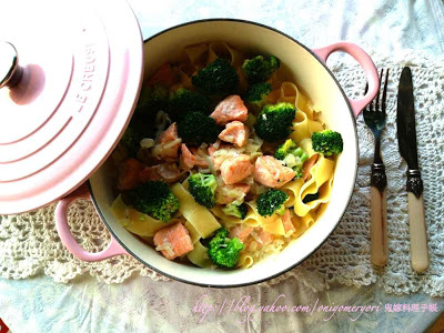 白汁西蘭花三文魚闊條麵 (附食譜)