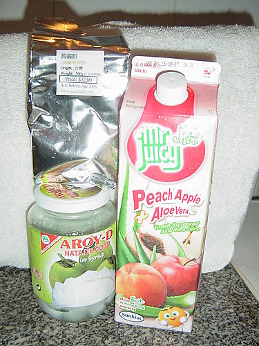 8號風球來得很快,走也很快,在沒有準備的情況下,家中沒有什麼材料,又想攬D野,於是又整了果凍,今次係桃味果汁加椰果,只做了6個,