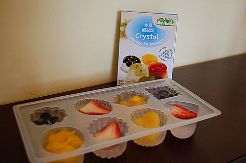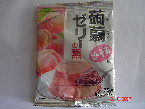今次試用第3種葋蒻粉做果凍, 有桃味一包加300ml水即可,再加椰果或生果更好食。