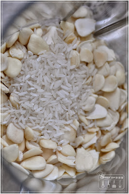 南杏一碗,加北杏2湯匙,米2湯匙,