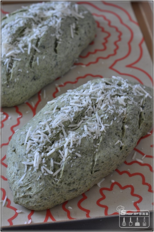 7. 於麵包面上噴少許水,撒上麵粉,再輕輕畫一刀,撒上Parmigiano芝士碎,最後發酵2小時,