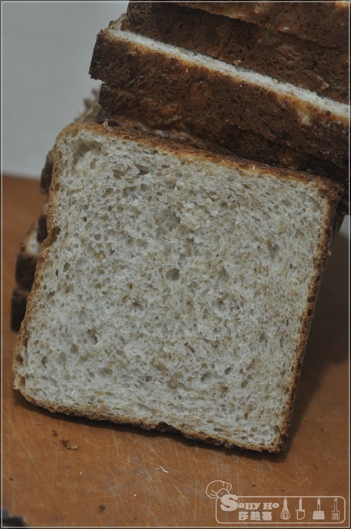 吐司內部不錯,總水量不足70%,也可再加5-10%水。