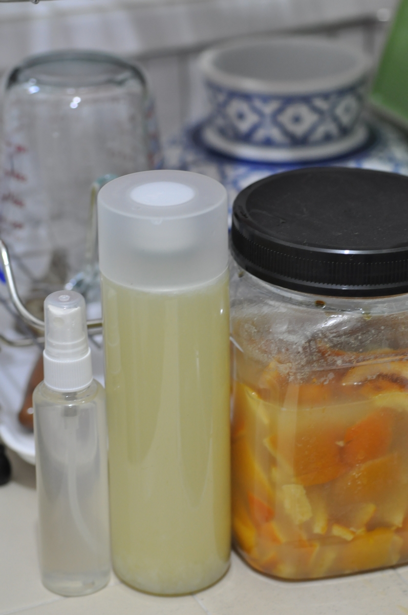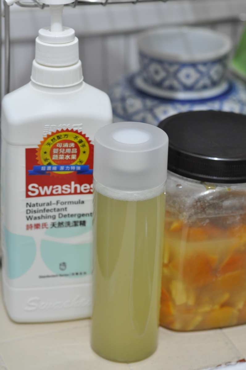 酵液及果皮放了入廁所內,清香有光澤。