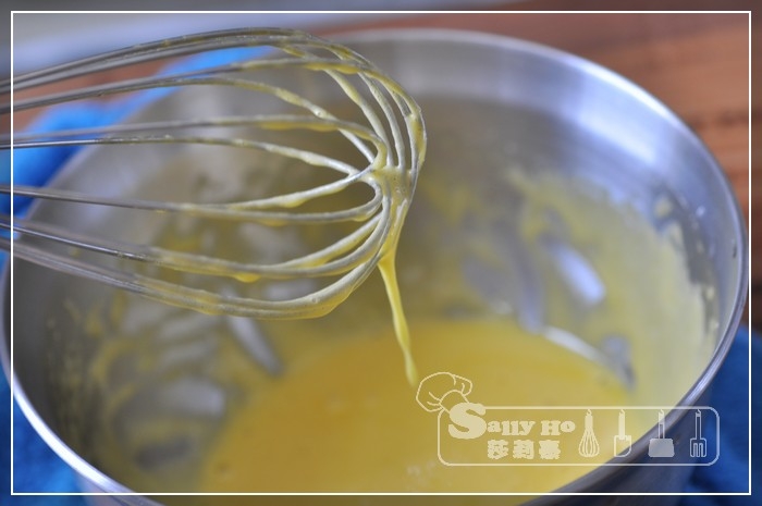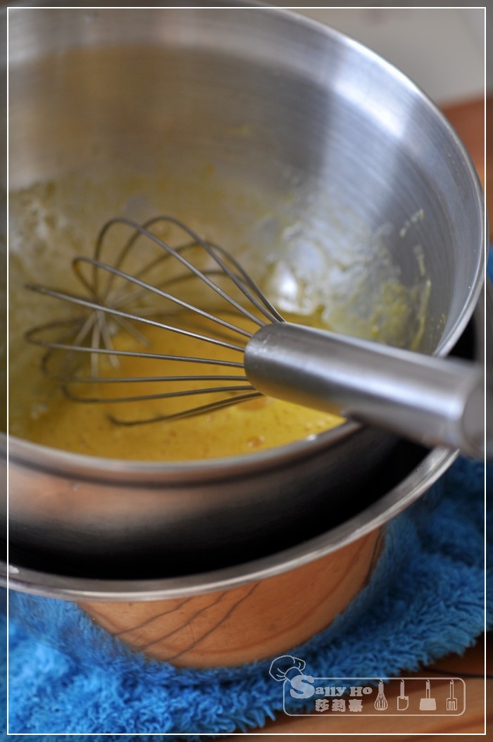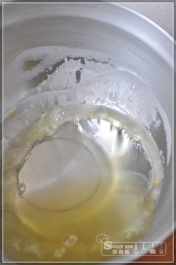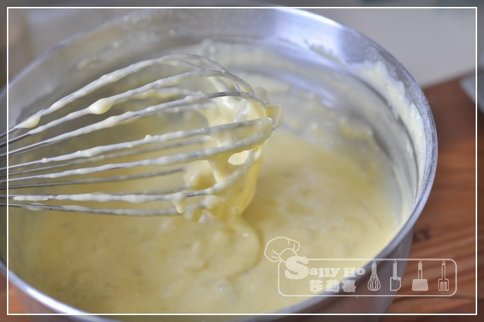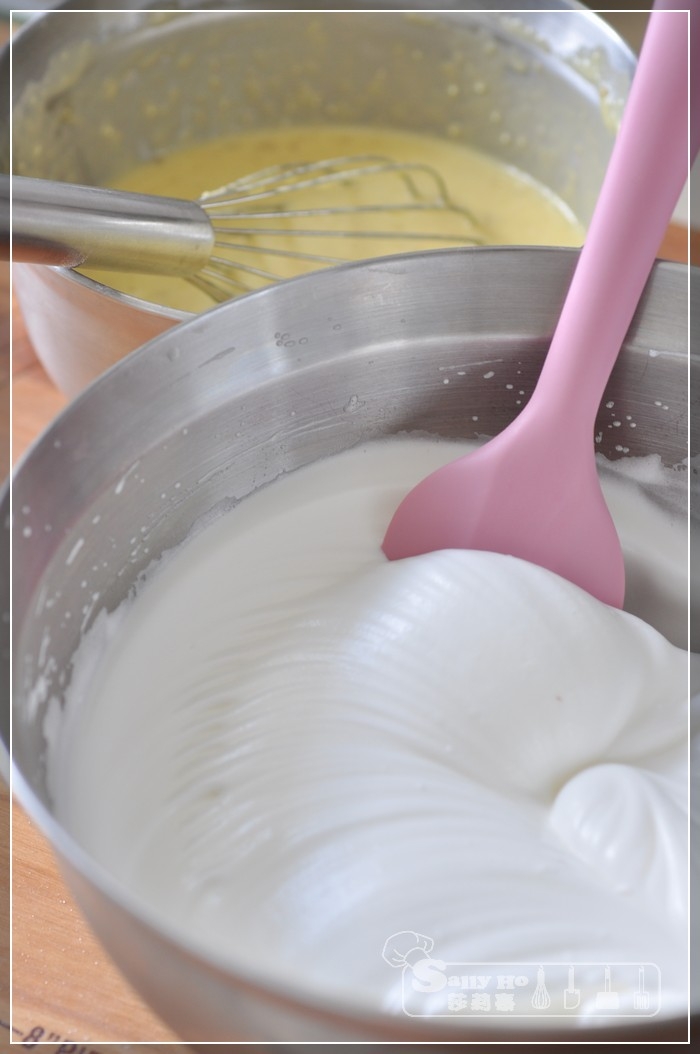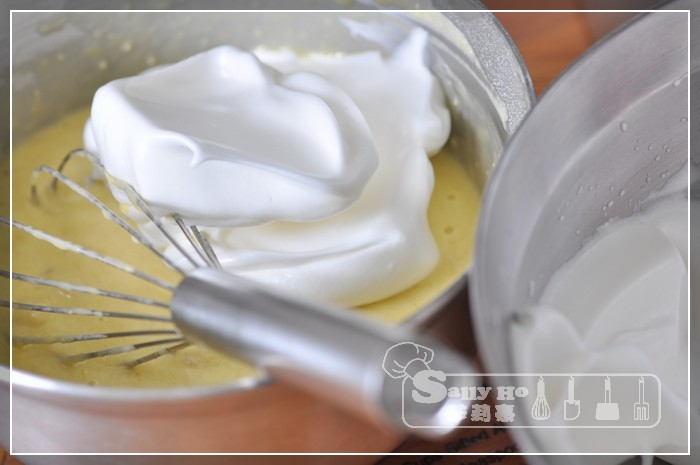 2) 蛋白加糖打起,混合蛋黃麵糊