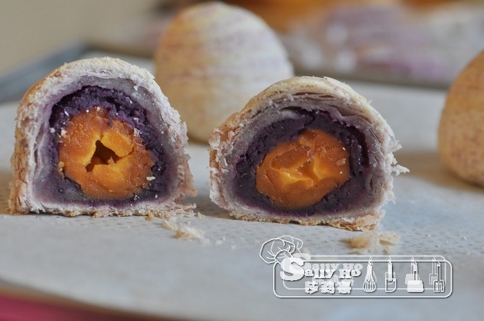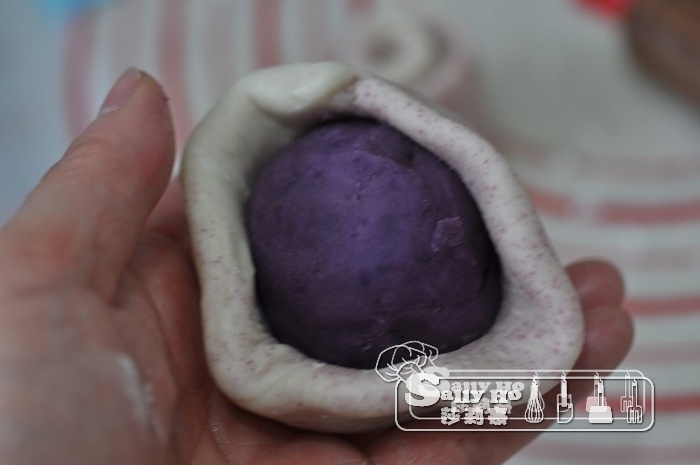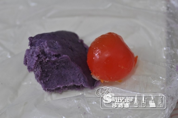 蕃薯餡包入咸蛋皇,再包上皮即成。