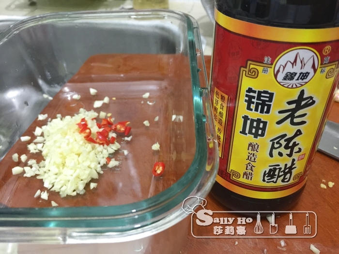 今次選用了這枝陳醋,我覺得好吃,先調好汁,隨意用蒜蓉、紅椒、陳醋、豉油、糖、雞粉,及花椒油。