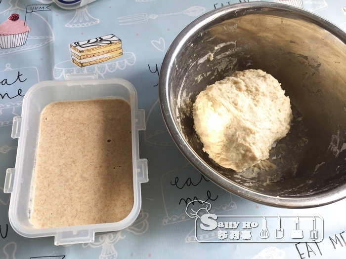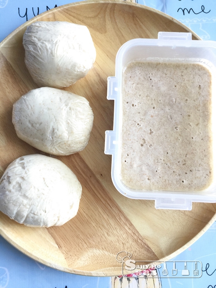 只要取酸種100g加入高粉300g及水100g, 搓成團,室溫發至2部大