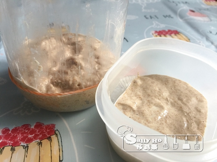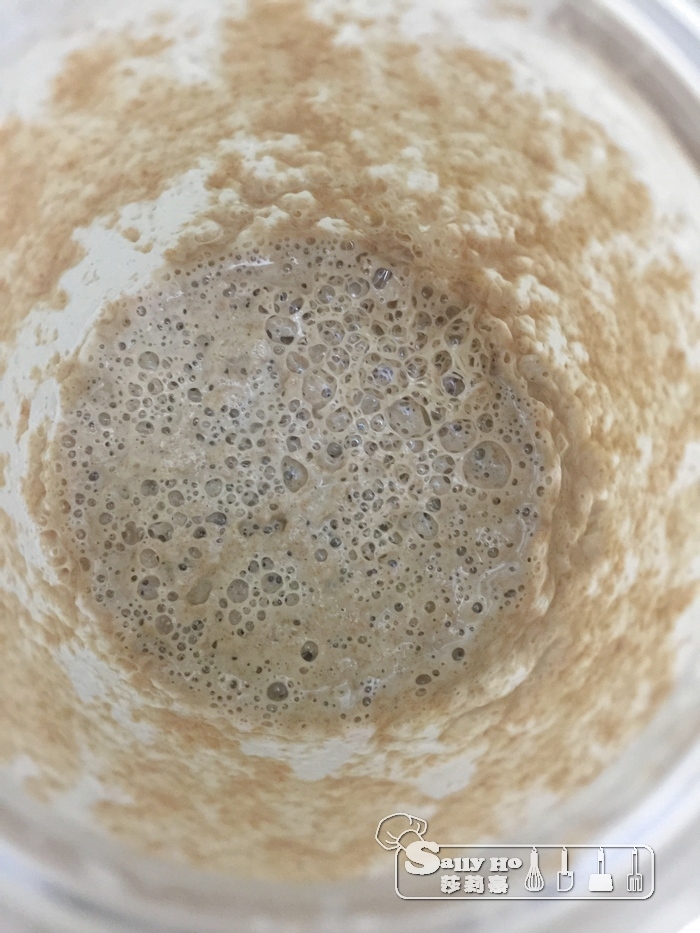 拌勻就室溫發酵至表面起泡即成酸種液,可雪在雪柜保存,或可即做包,如下星期再做包前,