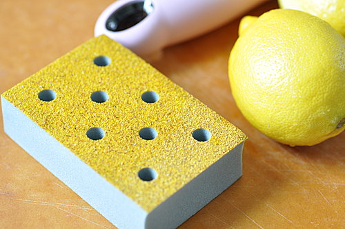 先用洗生果的百潔布擦走檸檬面皮的臘