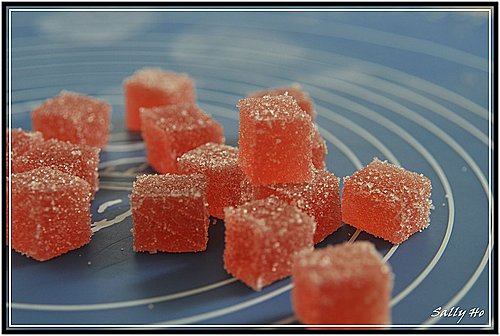 食過番尋味,今次轉同白桃果蓉,冇咁酸,軟軟的好好食,第二次做,技巧比上次熟練,加大了份量,正好用6" x 6" 的模,切出來一粒粒都是正方型的, 天氣凍不用放雪柜,送禮也很合適。 改自藍帶食譜系列 (75粒左右) 6" x 6" 模 黑加倫子果蓉 250g (可自行改其他味道) 萍果酸 6g 砂糖 (A) 25g 砂糖 (B) 260g 粟膠 53g 檸檬酸 6g 砂糖 (C... 看全文 -