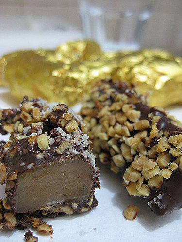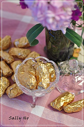 今次得到名blog友的指點,令我做到了比較滿意的成績。 滿意地方 : 1) 型態方面2) 煮焦糖的技巧3) 用了質地好些的牛油紙,無痴紙4) 小阮子教我用保鮮紙位盒,份量剛剛好 不滿意地方 :1) 包裝方面,金紙比較細張,包得不美觀,所以不要切太大件。2) 太甜應減糖3) 杏仁粒被溶朱古力蓋過,貼得不美觀及不平均。 食譜改至Lyric外層: 調溫朱古力 100g (已包括調溫操作時的份量) 及杏仁角 約100g 內層:... 看全文 -
