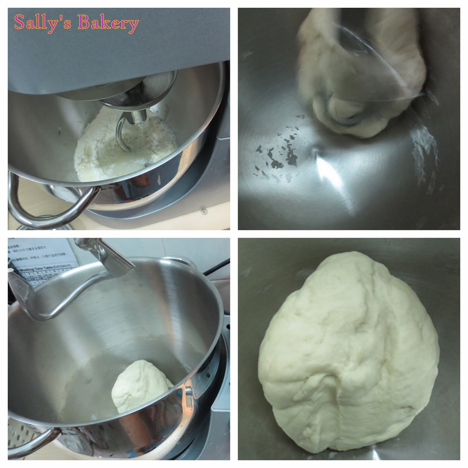 4.   將主麵糰材料(除了牛油外)放到攪拌盤拌勻。(我用KM040 開2度1mins)