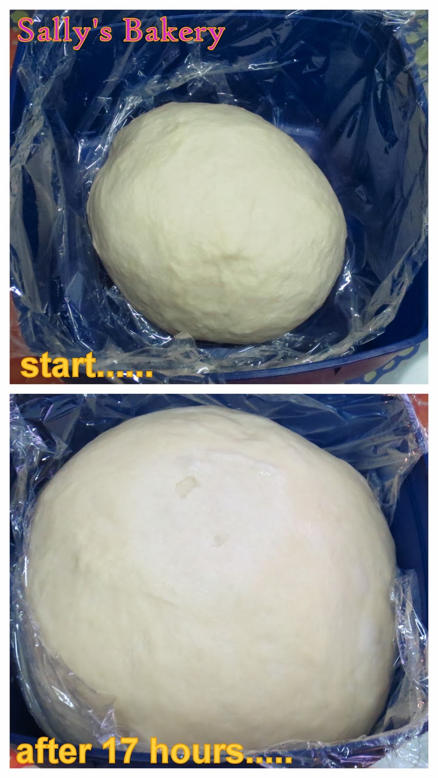 1.   將17小時麵糰材料搓勻至光滑麵糰。(我用KM040 開2度2mins, 再開3度4mins)