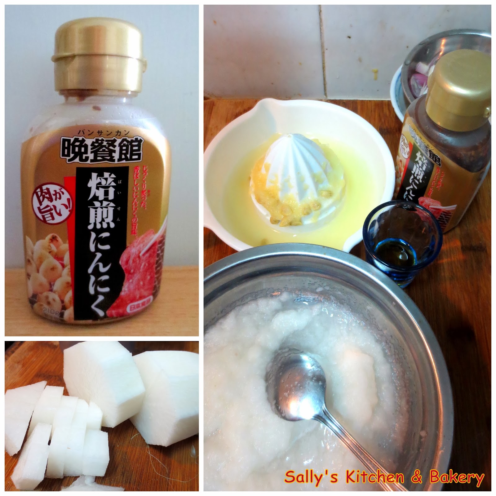 將白蘿蔔磨蓉(我用攪拌機打成蓉), 蒜頭切碎,蔥洗淨切粒,加入所有調味料撈勻便成,或按個人喜好調至合自己味道,備用。