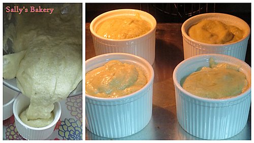 2. 梳夫里杯塗上牛油占上沙糖或麵粉,備用。(材料以外)