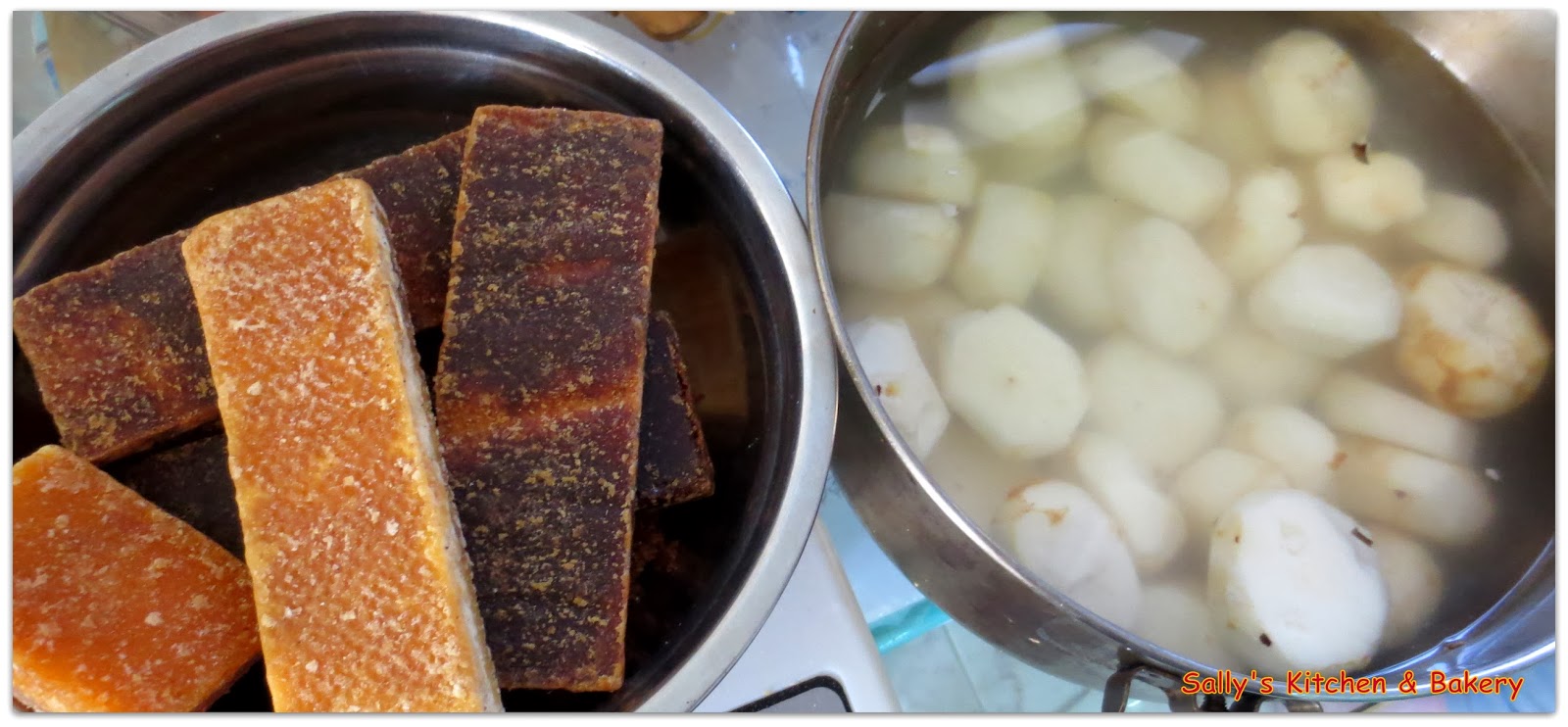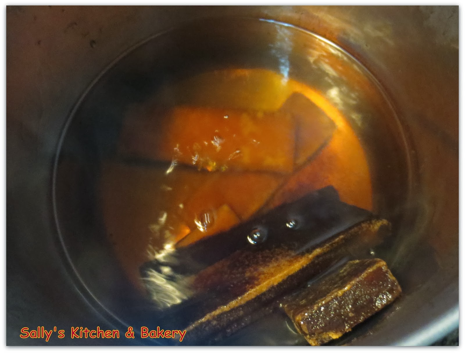 <注意: 糖我顏色便是馬碲糕的顏色,喜歡淡色的可用砂糖+片糖, 我這次全用了片糖,所以較深色。>