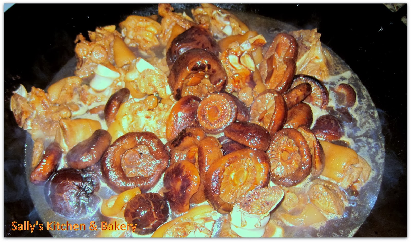 4. 起油獲爆香冬菇, 加入豬手兜勻。