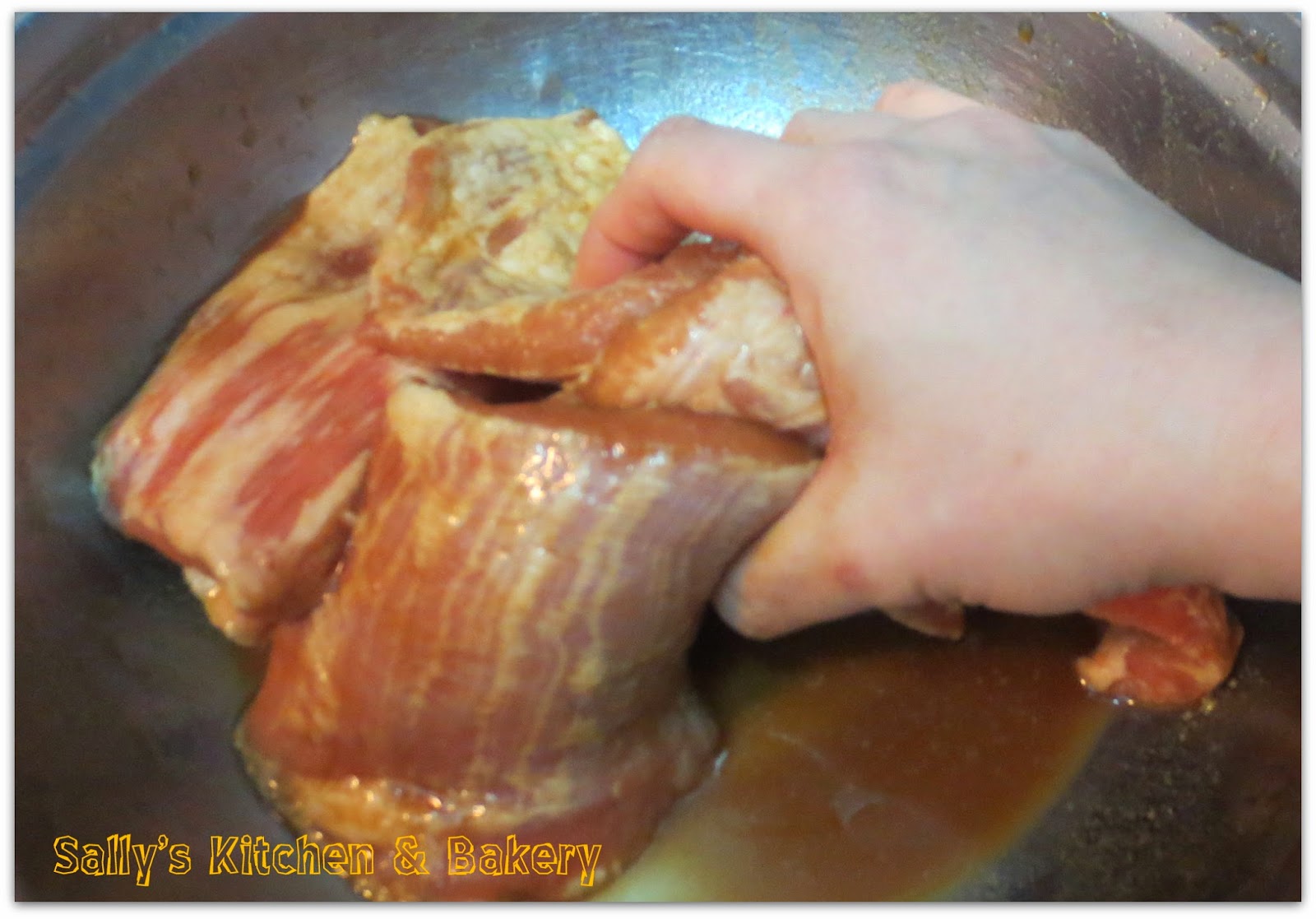 豬頸肉洗淨,隔去所有水份,加入所有醃料按摩1分鐘,醃最少1小時或隔夜更好。