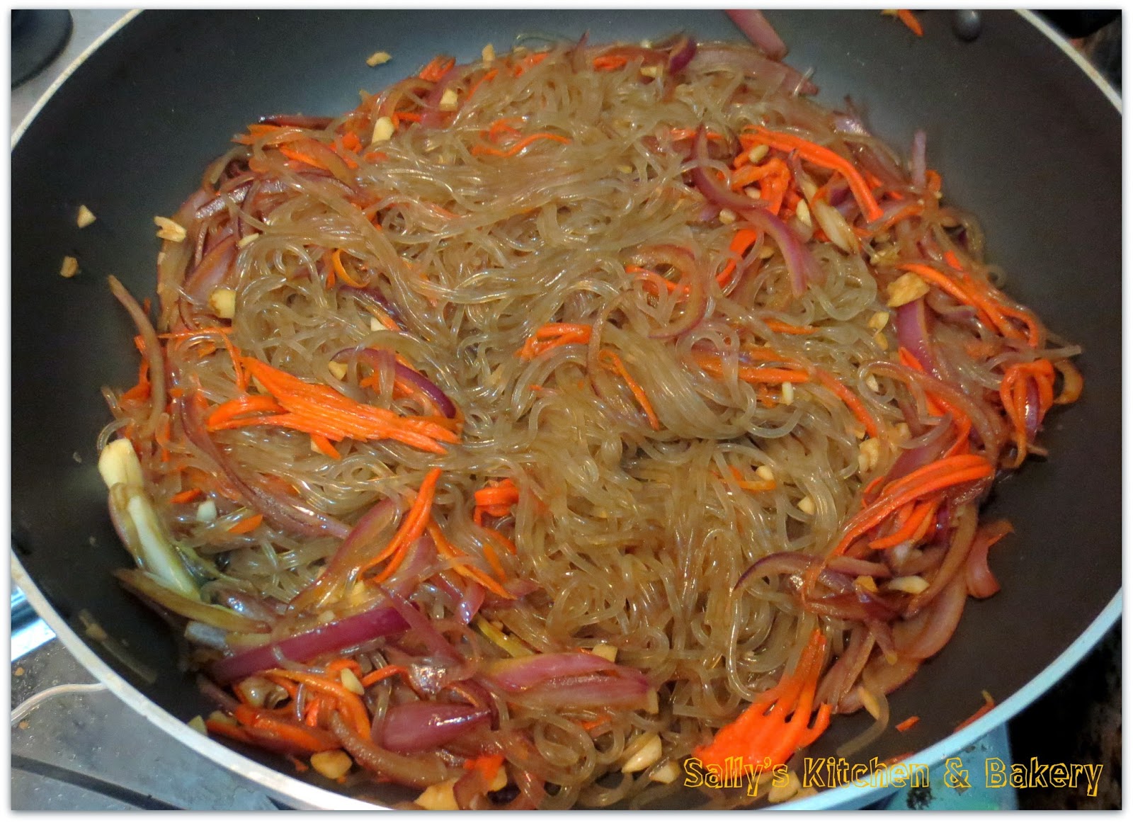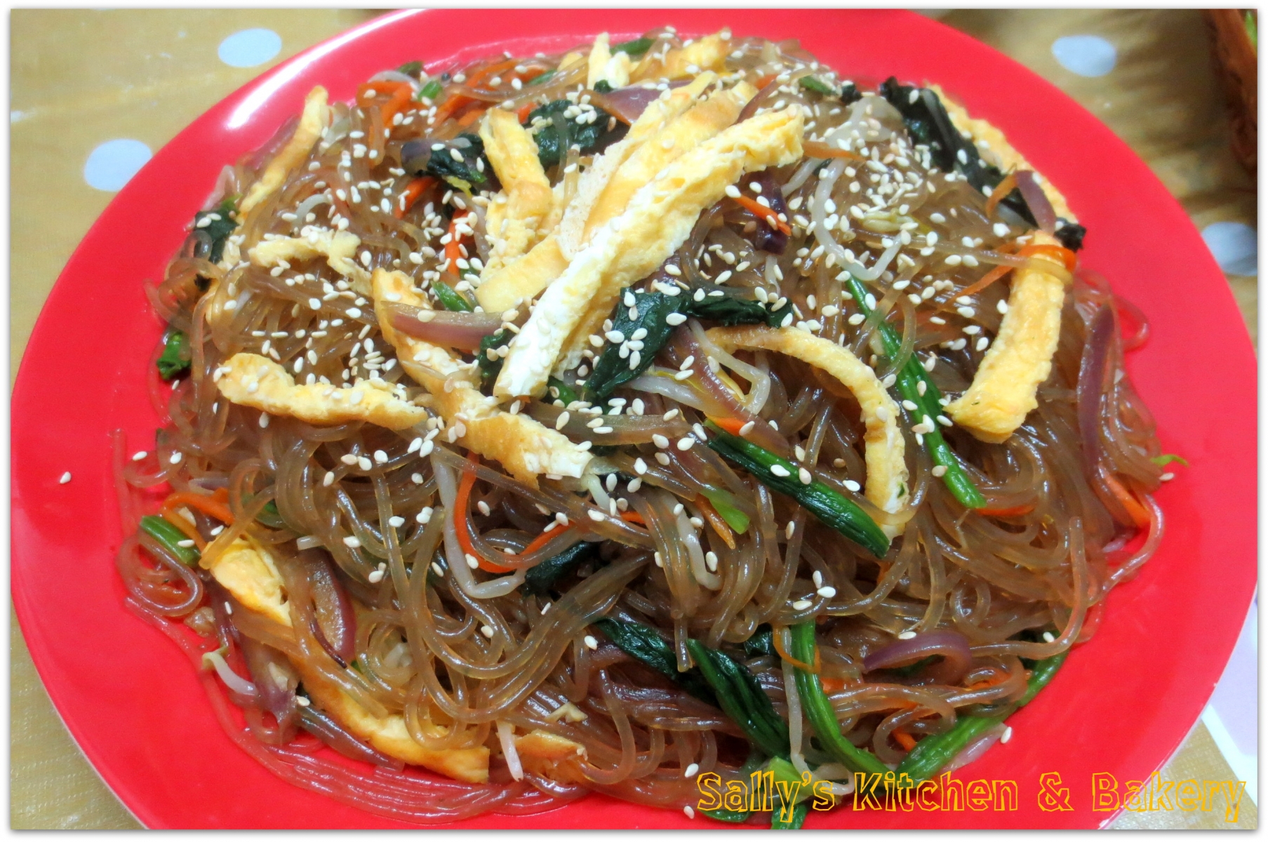 韓式炒粉絲亦可以加雞絲或肉絲去炒,但因為我每次做都配有很多其他肉類餸菜,如上一次韓式大餐有炸雞,又有韓式牛仔骨,昨天帶回公司跟同事的韓式午餐又配有韓式牛肋條,所以便簡簡單單清清地。而其實配料亦很隨意,做韓式前菜時取出少許芽菜及菠菜,再加洋蔥, 甘荀及蛋絲,很豐富囉!!! 如喜歡亦可適量加入椰菜絲、冬菇絲及木耳絲的啊。