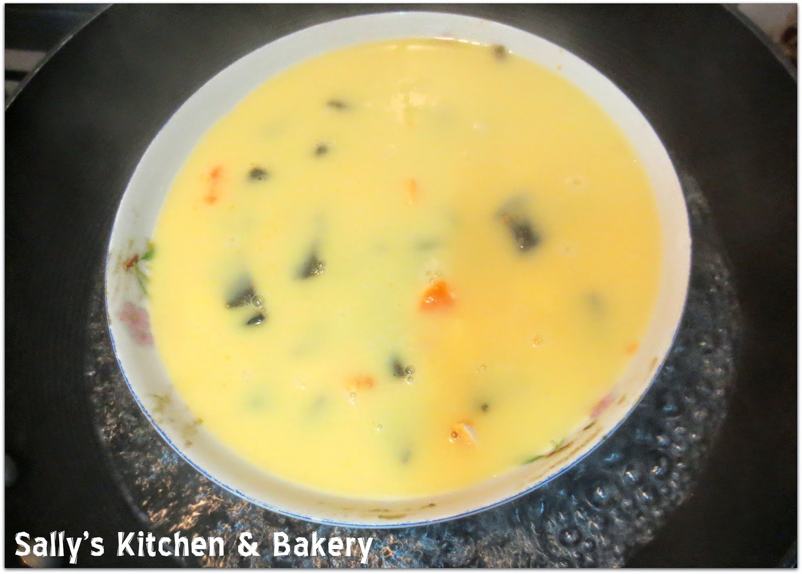 煮 三色蛋其實好隨意,沒有一個正確方法,喜歡便隨心煮吧,不會失敗的,最多好像我這次一樣,就是蛋不夠滑吧!! 但肯定是熟了的,哈!! 很久很久沒蒸蛋,不知為什麼,煮的時候又心不在焉,到蒸好了食時才發現蛋不夠滑,回想一下是今次加不夠水,我只加了大約200ml的水, 肯定是水不夠吧,如果用300ml水更好。