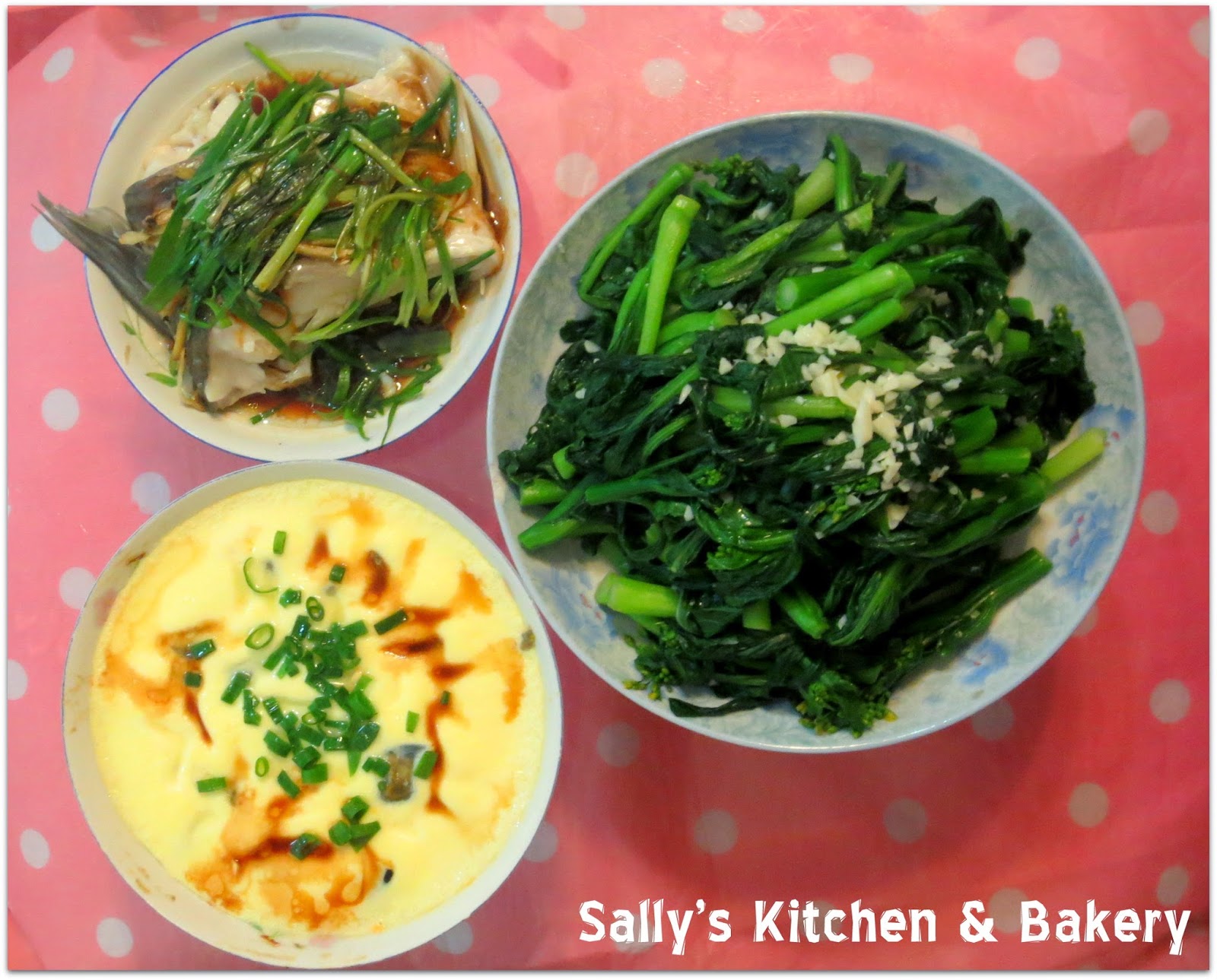 蒸三色蛋,清蒸鯇魚,32媽咪炒蒜茸菜心苗