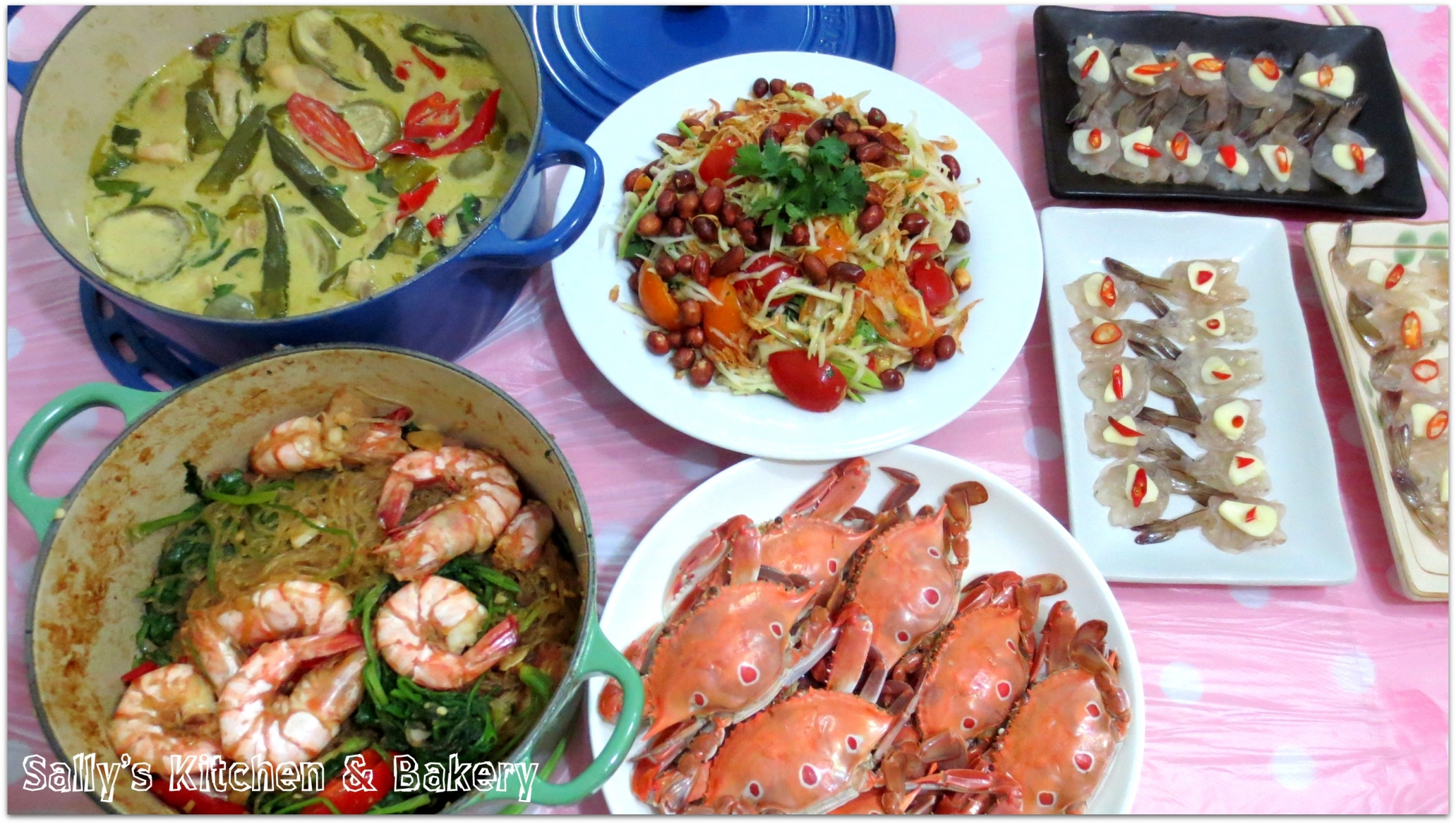 泰式生蝦刺身,泰式青木瓜沙律,藍象泰式青咖哩雞,都是第一次做的,實在好玩又好味!!
