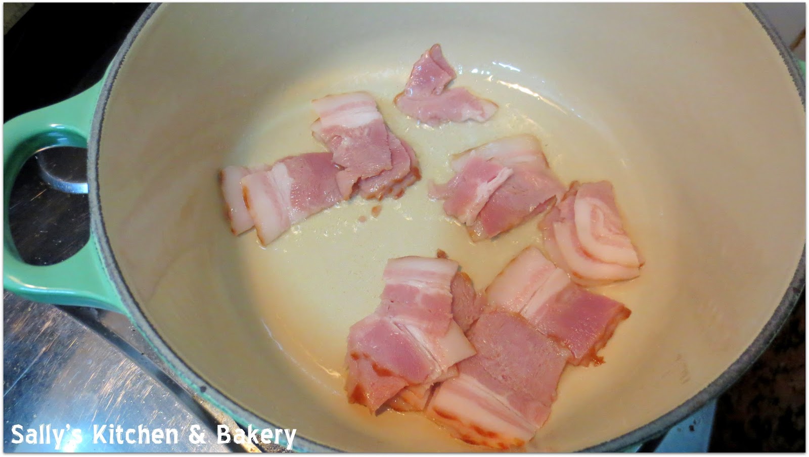 2. 鍋子下少量油預熱,中大火下煙肉炒香,約1分鐘。