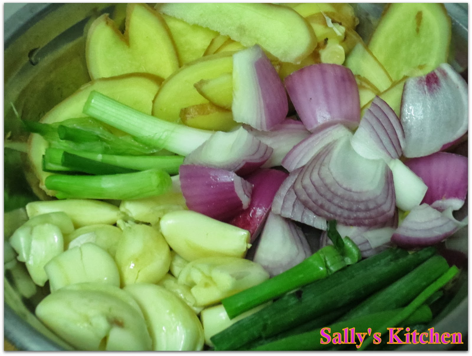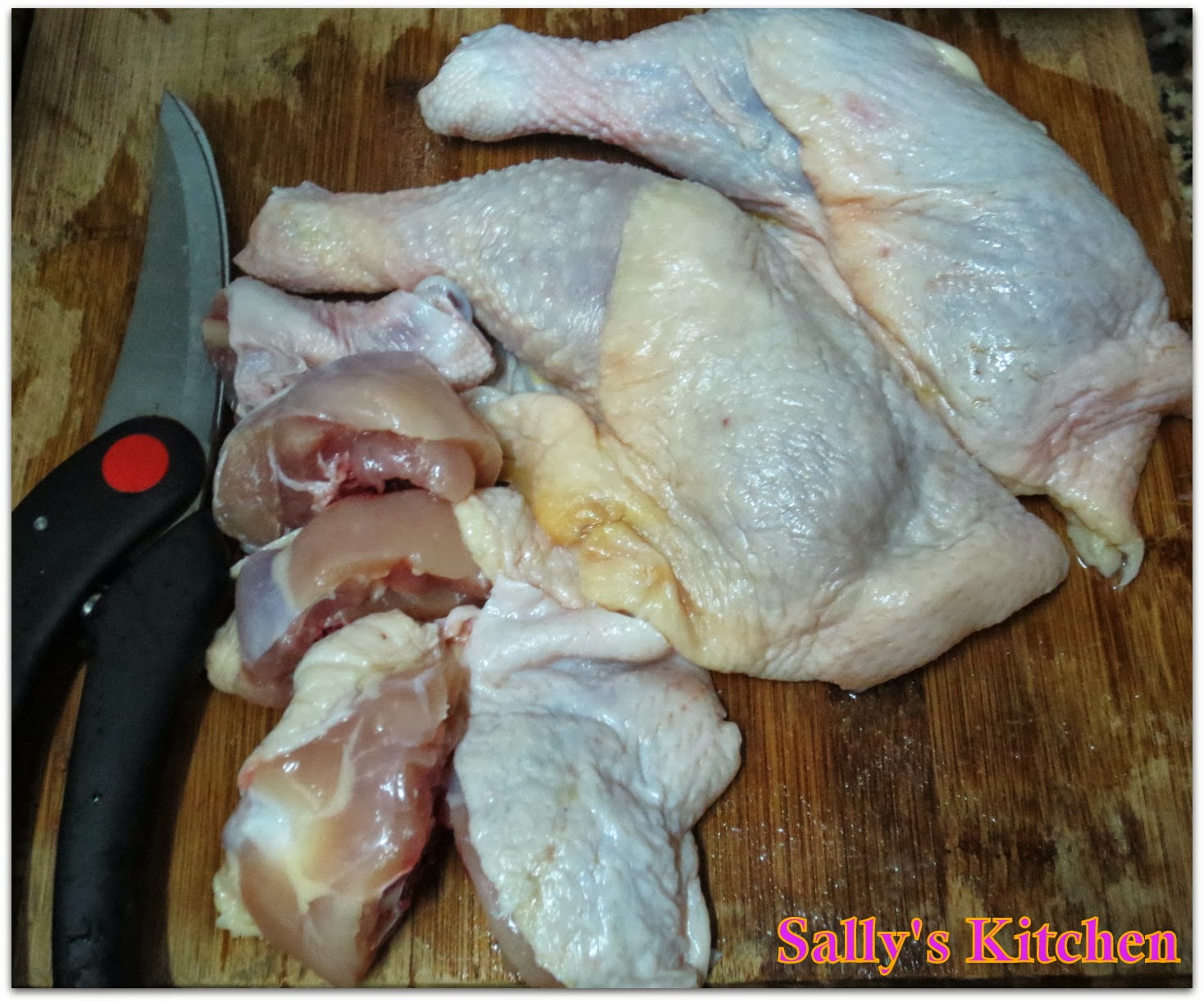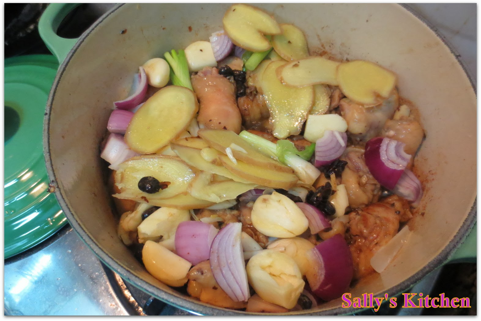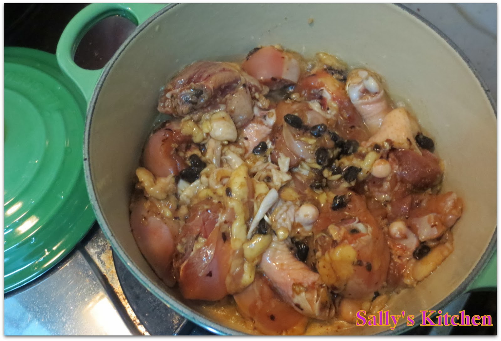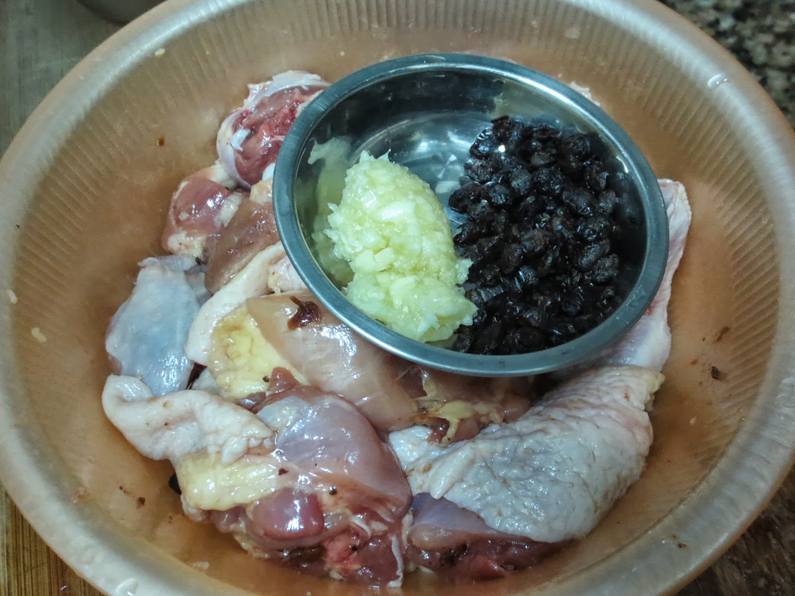 1.雞脾洗淨,斬件/切件,用蒜茸1湯匙及一半豆豉略醃,約10分鐘。