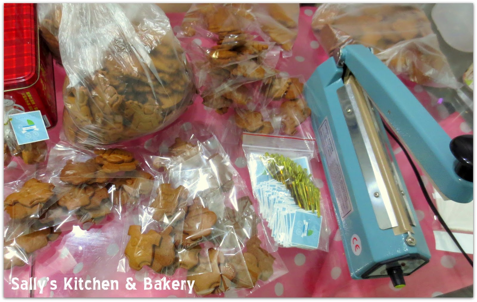 薑餅焗好後要完全放涼後才可包裝!! 一盤又一盤的送進焗爐,一盤又一盤的製成品出爐,放在架上放涼,好震撼的場面啊!!! 不停做了不知多少盤,直到一共有兩座薑餅山出現!! 哈哈~~ 真的好興奮啊!! 可愛的小薑餅啊~~~