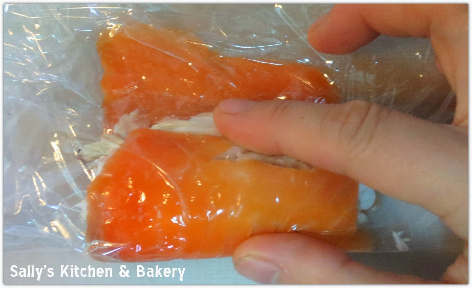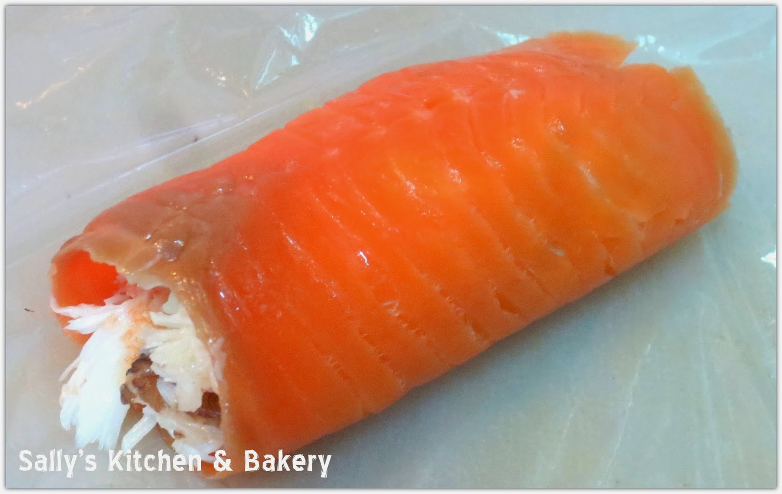 4. 拿起保鮮紙向上卷起,輕力壓實,卷好後可放回雪櫃備用,在上桌前再逐份上碟。
