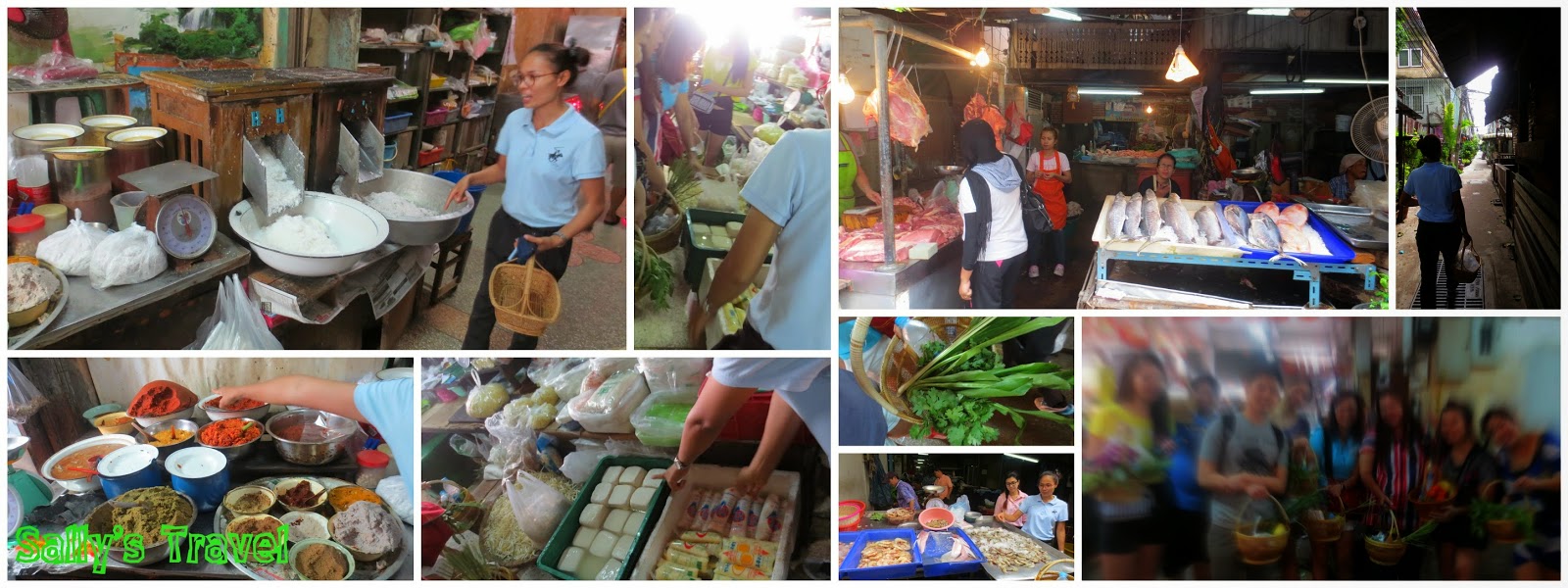 街市是濕漉漉的,而且還帶著一些街市有的氣味。我們行過賣椰絲的地方,經過賣魚賣蝦的,然後停留得最久的是賣香料香草的地方,每款要用的香料都會介紹一下 囉!! 包括香茅、辣椒、芫茜、泰國芫茜、南薑、手指薑、黃薑、青擰、泰國青擰......等等。最後到達賣粉麵及豆腐的店子。然後分工合作每人的籃子也是滿滿的 跟著老師步行回學校去。