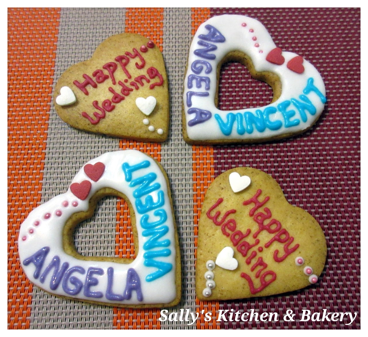 11 Jan 2015 星期天,去參加朋友的婚宴,趁前兩天做了小天使曲奇,便順道焗了一些心形的。花點心思,用蛋白糖霜寫上祝福,便成了送給朋友的曲奇小禮物了。希望朋友會喜歡我這小小的心意吧!!