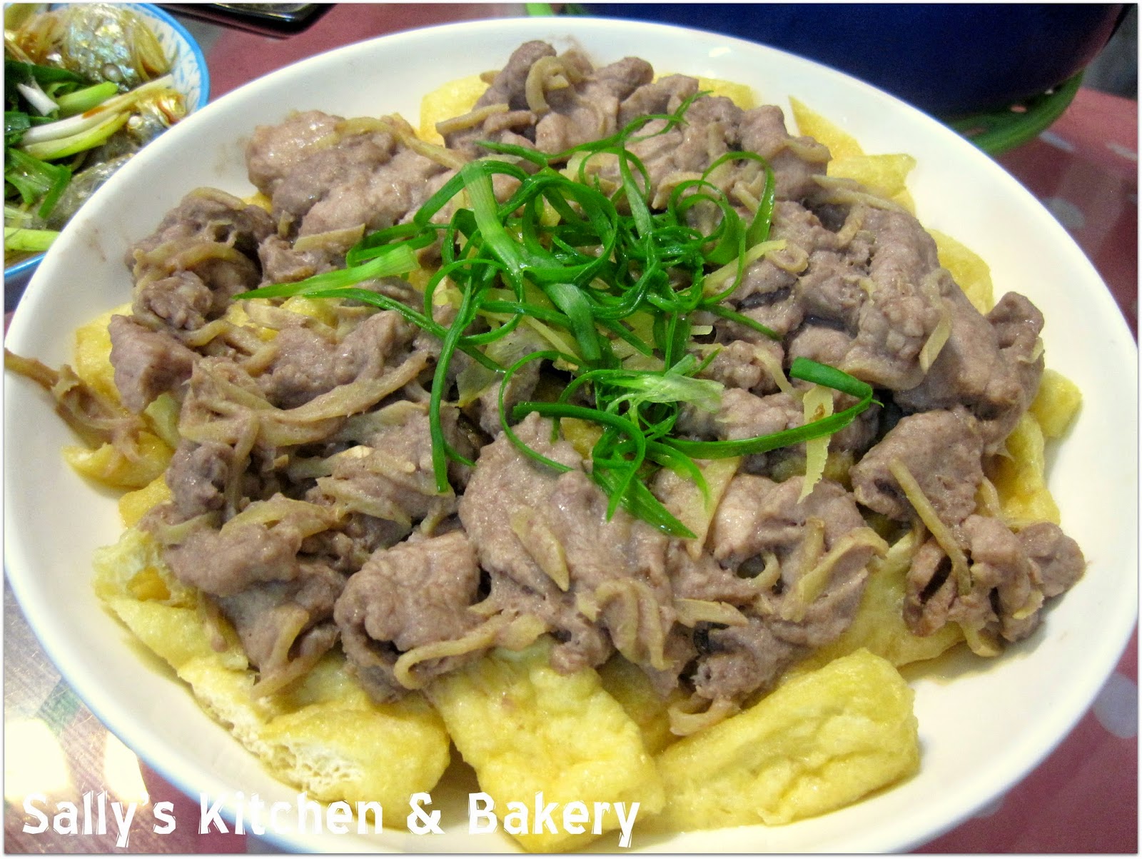 4. 將蝦醬豬肉放上豆卜面。