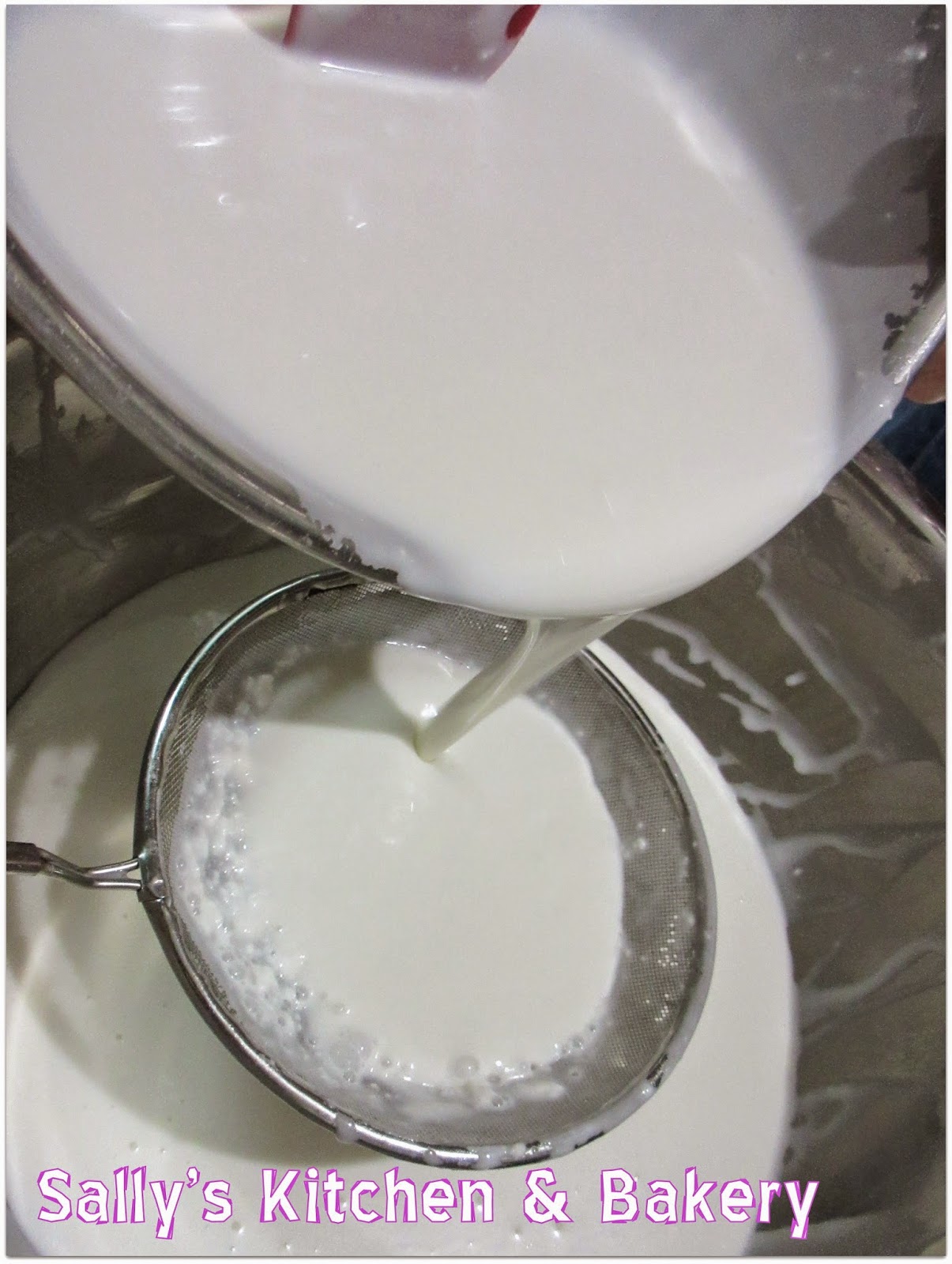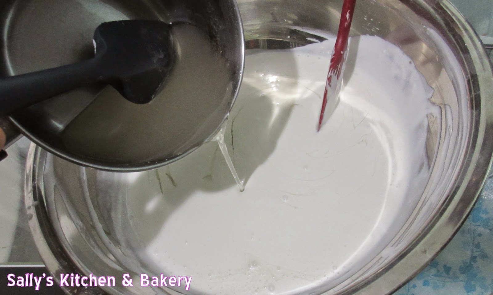 3. 將糖水加入混合好的粉漿內均勻地攪至完全混合。
