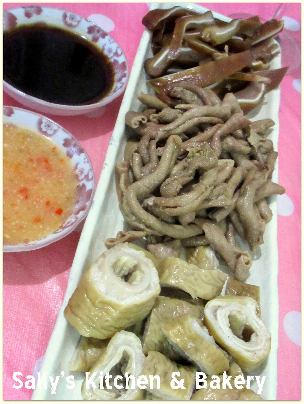 有豬腸, 鵝腸及豬耳仔,配著紅酒,又真的非常美味!! 哈~
