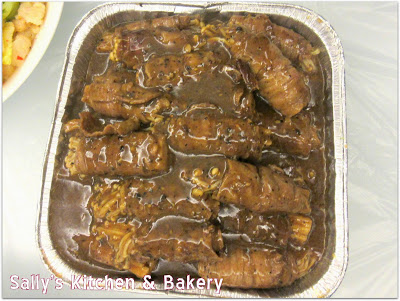 炆煮好牛肋條,便請工人姐姐們繼續預備金菇牛肉卷,再預備大蝦及其他配菜。