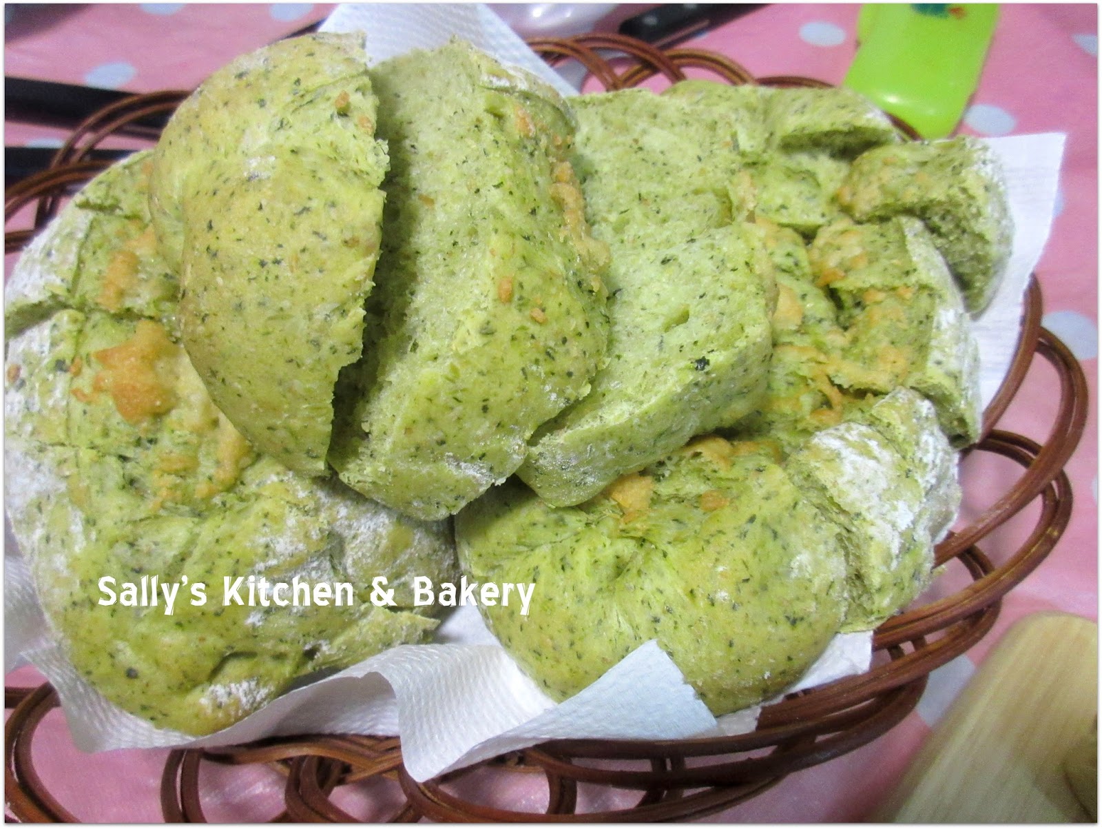 用了手搓麵包的食譜,用KM040廚師機搓麵糰,部份水份用了菠菜蓉代替,就變成了綠色的菠菜麵包啊!!!