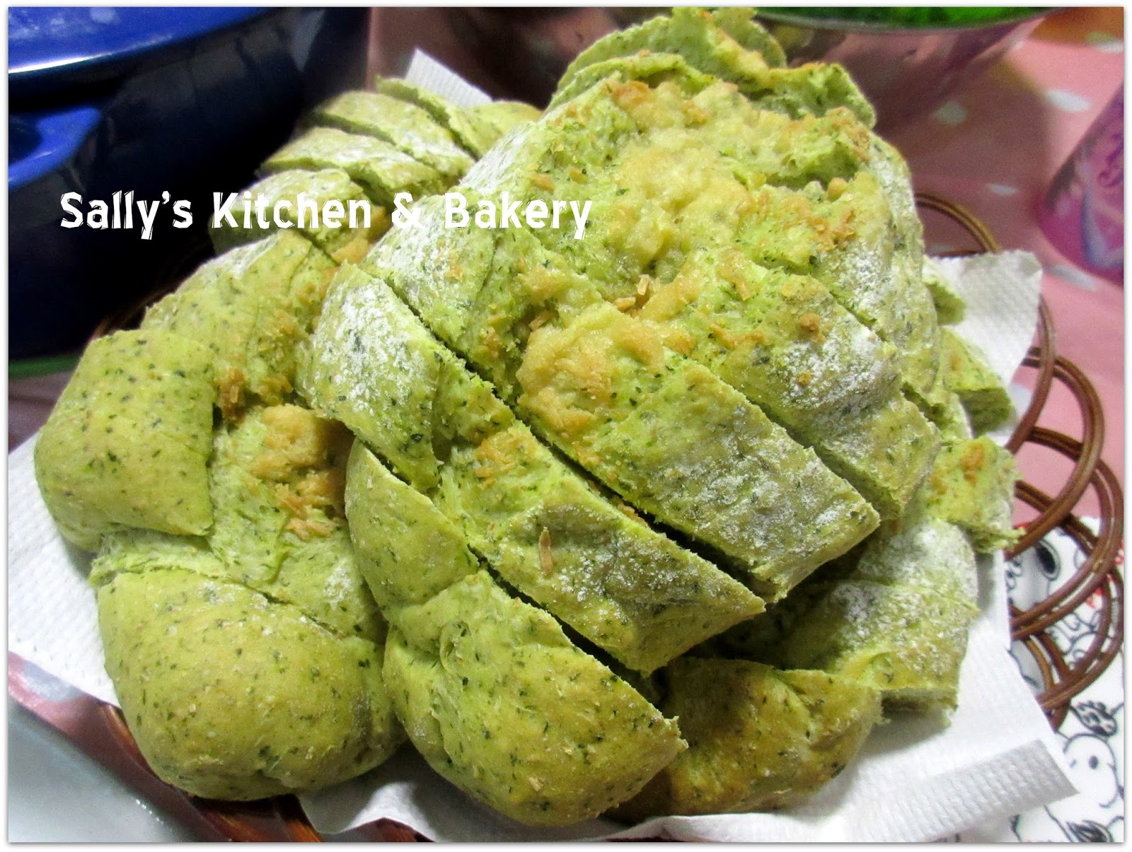 用了手搓麵包的食譜,用KM040廚師機搓麵糰,部份水份用了菠菜蓉代替,就變成了綠色的菠菜麵包啊!!!