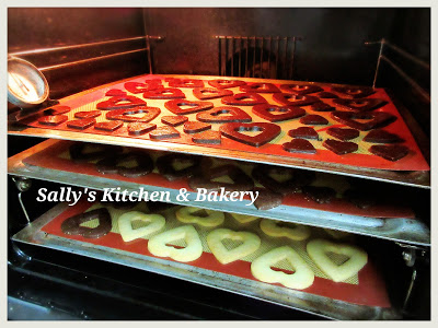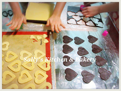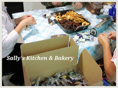 決定了做曲奇的日期在他們婚宴的一個星期前,一對新人亦都希望到來幫忙參與其中,令這份禮物更加有意思啊!! 他們帶備露營用的睡袋,日以繼夜, 夜以繼日的留在莎莉廚房開曲奇工場,由星期五晚開始,2日3夜馬不停蹄/足不出戶的趕工,順利完成所有工序,連包裝都完成了,一共超過了300份的回禮小禮物, 焗了超過1500塊曲奇啊!!!!