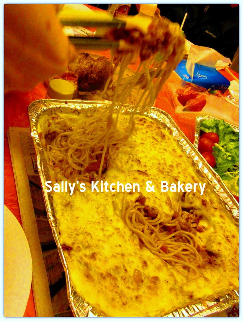 5:30pm 到達會所,便預備翻熱食物及作最後準備,要煮熟意粉倒上肉醬及放滿芝士入焗爐!! 預備慢煮三文魚, 一切準備好便可以開動囉~